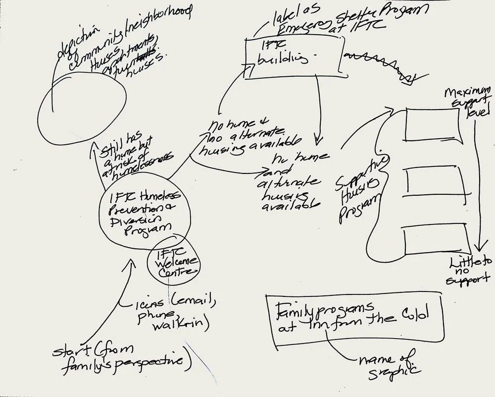 The initial client drawing showing the pathways a family could go through on one of their three main programs.